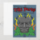 Máscara de moai tiki em textura de pedra com totem, chamas e folhas tropicais ao fundo. trabalho de arte original desenhado à mão, com tinta digital, colorido e sombreado.