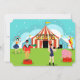 Subam, pessoal! Passe para o incrível Convite de festas de Circo Vintage Personalizável. Sim, vamos, vamos todos! Este meio século de arte moderno e minimalista apresenta um desenho animado de um circo genuíno de três anéis. Leva tudo. Com a relva verde, você pode ver um mestre de anéis vestindo um casaco vermelho com caudas, calças laranja e um chapéu preto. Por um lado, ele está segurando um megafone verde, que lhe permite ser ouvido enquanto lhe diz para subir! Atrás do mestre do anel, há uma linda mulher malabarizando cinco bolas. A julgar pelas estrelas na saia marinho e no topo laranja, ela é uma estrela do show. À esquerda do homem com o megafone, vemos um músico valente. É preciso confiança para tirar um marinho, ombro-a-ombro, unitard, mas o Sr. Strong Man o faz com estilo. Meu Deus! Veja aqueles biceps abaulados como seus elevadores, aquele monstro como se fosse tão leve quanto uma pena. Seu bigode preto e guiador parece tão maneiro quanto o resto dele. À esquerda do construtor de corpos, há um elefante-bebê, rosa, parado em um pódio vermelho. Não se preocupe. O paquiderme juvenil parece ser tão domado quanto um gatinho. Em direção à parte de trás da cena, podemos ver um homem de pele louca fazer um palhaço de si mesmo. Ele não comprar aquele terno vermelho e amarelo, ao estilo harlequin fora da prateleira! O seu chapéu azul, o cabelo laranja e amarelo, a tinta da face branca, e o nariz vermelho o tornariam irreconhecível à sua própria mãe. E este é apenas o entusiasmo que podemos ver! Quem sabe o que os imbecis animados estão a fazer nos três grandes cumes que gritam o fundo! Duas tendas azuis e aqua estão flanqueando uma gigante tenda vermelha e creme listrada com letras amarelas e pretas que soletram, "CIRCUS". Uma bandeira amarela, com faixa, está acenando do topo de cada barraca. O céu é sombra de aqua, lacre, azul e branco e está cheio de estrelas brancas mágicas. O lado oposto desse convite para gatinhos apresenta um fundo aqua com uma maca de listras largas, vermelhas e creme. Escrevendo vermelho brilhante incita os destinatários a, "Venha Um Venham Todos!" Há muito espaço para personalizar com seus próprios e espetaculares detalhes do partido. Tal como o próprio circo, esta design é divertida para toda a família e é perfeita para crianças de todas as idades!