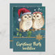 Vintage Teal Blue Christmas Owls Convite de festas apresenta corujas bonitas de Natal Sentadas no galho da árvore, queda de neve, borda dourada, floco de neve de ouro e modelo de texto na moda.Um design perfeito para a festa de Natal.Clique no botão personalizar para personalizá-lo com seu próprio texto