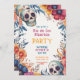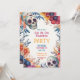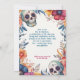 Apresentando um convite de festas Día de Muertos, muito bem trabalhado, que combina tradição com a elegância da arte aquática. O convite apresenta um fundo limpo e suave, fornecendo a configuração perfeita para os elementos design incríveis. Dois crânios de açúcar branco são o ponto focal do convite, delicadamente ilustrados no estilo aquarela. As matizes sutis e padrões intrincados nos crânios lhes dão uma presença macia, mas cativante. Ao redor dos crânios de açúcar estão aglomerados de flores roxas e azuis, também reproduzidos em um estilo fluido de aquarela. Estes elementos florais acrescentam uma explosão de cor e elegância, melhorando a estética geral e dando vida ao design. O verso do convite espelha o mesmo fundo sereno, oferecendo amplo espaço para texto personalizável. Esta área é perfeita para incluir detalhes de eventos, uma mensagem pessoal, e uma linha RSVP, todas enquadradas pelas lindas flores de aquarela e crânios de açúcar. Com a combinação de delicados crânios de açúcar branco, flores roxas e azuis vibrantes e um estilo aquoso, este convite é a forma perfeita de dar o tom para uma graciosa e significativa celebração da Día de Muertos