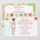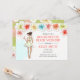 Convite de Fim de Semana de Despedida de Solteira na Praia apresenta um tema tropical com flores de hibisco e noiva morena prestes a se casar desfrutando de um coquetel. Disponível com garota loira, morena, ruiva e com pele clara ou escura.