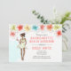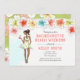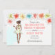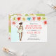 Convite de Fim de Semana de Despedida de Solteira na Praia apresenta um tema tropical com flores de hibisco e noiva afro-americana prestes a se casar desfrutando de um coquetel. Disponível com garota loira, morena, ruiva e com pele clara ou escura. O verso do convite apresenta coquetel e detalhes.