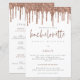 Convite de Fim de Semana do Lixo Glitter Dourado do Rosa de Orçamento. Um tamanho maior de 5,5" x 8,5" a um preço orçamentário, em um STOCK CARD SEMI GLOSS de 110 lb, excelente de convites, aproximadamente na mesma espessura de um cartão postal, ou um estoque LINEN elegante de 110 lb - para um luxo, ligeiramente mais fino, com um valor de excelente. OBSERVE QUE OS ENVELOPES OPCIONAIS SÃO UM POUCO MAIORES EM TAMANHO A 6,75" x 9" aprox. Este alternativo de tamanho de orçamento também está disponível em outras opções de papel. O papel FELT de 100 lbs é colorido por buff, NÃO branco, então adiciona um toque rústico. O estoque de papel MATTE de 80 lb é branco brilhante, para impressão nítida, excelente para seus menus e programas, enquanto o papel SATIN de 80 lb é fino e leve, ideal para gabinetes. O cabeçalho principal da Festa Hen está em uma tipografia de script de conjunto cor-de-rosa rosa e o resto do texto que você pode personalizar facilmente, assim como seus detalhes itinerários no sentido inverso.