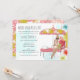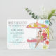 Convite de despedida de solteira para fim de semana de fuga para a praia apresenta a noiva em um ambiente tropical. Noiva disponível com cabelo loiro, castanho e ruivo e pele clara ou escura.