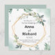 Esta design é excelente para um casamento rústico, outono, inverno, país ou ao ar livre. Estes incríveis convites para o casamento apresentam uma estrutura geométrica de folha de ouro cercada por florais neutros de cor d'água com folha de ouro e sotaques de folha. Na moda olha um simples fundo branco.