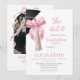 Convite de formatura com borlas Coquette rosa Minimalista, Anúncio de festa de formatura Ela Conseguiu, Festa de formatura editável