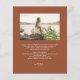 Convide os convidados para a sua formatura com este convite de formatura personalizável. Ele apresenta uma elegante caligrafia em terracota. Personalize este convite de formatura com foto adicionando uma foto e seus detalhes. Este elegante convite de formatura é perfeito para qualquer tema de evento.