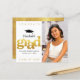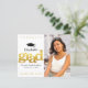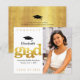 Anuncie ao mundo que seu graduado favorito atingiu sua meta com este convite de anúncio de orçamento personalizado, simples, moderno e impressionante. Tipografia ousada, gráfica, antiga e dourada falsa, tipografia preta e ícone de boné preto sobre um fundo branco moderno. No lado direito, adicione uma foto de sua escolha. Personalize o texto personalizado com o nome do graduado, nome da escola, data e ano de conclusão. No verso, adicione sua nota pessoal, próxima escola que eles estão frequentando, informações da festa, etc. Garantido para adicionar diversão estilosa à sua ocasião especial!