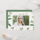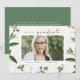 Convide os convidados para a sua festa de formatura com este convite de formatura personalizável. Ele apresenta flores brancas e folhagens em aquarela. Personalize este convite de formatura com foto adicionando uma foto e seus detalhes. Este convite de formatura botânico é perfeito para qualquer tema de evento.