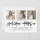 Este convite de festa de formatura moderno preto e dourado é perfeito para definir o tom de uma festa incrível! Este cartão de festa tem um toque de elegância e uma exibição de 3 fotos de formandos.