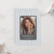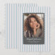 Celebre seu graduado com este Anúncio de Foto de Graduação com Recorte Ondulado, apresentando um fundo azul pastel listrado e uma moldura ondulada cinza escuro para sua foto. A combinação de cores frescas e o design limpo criam um visual moderno e atemporal que destaca o momento especial do seu graduado.