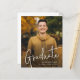 Um convite de formatura com roteiro moderno orçamento com fonte manuscrita e foto de retrato em bleed total na frente com nome e detalhes da formatura. O verso tem uma segunda foto com detalhes da festa. Clique no botão editar para personalizar este design.