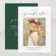 Convide familiares e amigos com este convite de formatura personalizável da turma de 2023. Ele apresenta caligrafia caprichosa verde e tipografia clássica. Personalize este simples convite de formatura adicionando sua foto, nome e nome da escola. Este elegante convite de formatura com foto em script é perfeito para formaturas do ensino médio ou faculdade.