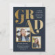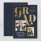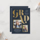 Um anúncio e convite de formatura combinado com múltiplas aberturas para fotos, tipografia em negrito em um layout assimétrico moderno.