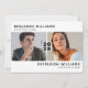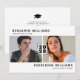 Convites de formatura conjunta modernos em preto e branco com um fundo branco simples que pode ser alterado para qualquer cor, duas fotos dos formandos e um modelo de dupla celebração moderno que é fácil de personalizar.