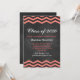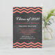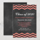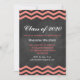 Este convite de formatura da moda está em um fundo de quadro negro ilustrado e acentuado com chevrons coral.