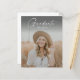 Convite de Formatura de Graduado em Roteiro Moderno de Orçamento. As cores podem ser alteradas. A parte traseira inclui detalhes adicionais e uma segunda foto. Clique no botão de edição para personalizar este design com suas fotos e texto.