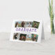 Veja seu graduado de um ângulo completamente diferente! O design do convite tem espaço para oito fotos quadradas na frente, cada uma colocada em um ângulo enviesado, e mais uma grande foto dentro. O modelo usa fotos verticais cortadas em quadrados. A frente exibe a palavra GRADUADO com uma linha abaixo para o nome. O interior inclui espaço para mais uma foto e texto para compartilhar os detalhes do evento, e uma seção no verso para compartilhar planos futuros. Disponível nas cores escolares preto, vermelho, laranja, verde, azul, roxo, grená e laranja queimado.