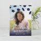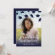 Celebre a conquista máxima do seu graduado com nossos convites de festa de formatura modernos. Destacando uma foto personalizada do seu graduado ao lado de uma variedade de boinas de formatura azuis-marinho caindo, ele define o tom perfeito para uma celebração memorável. Além disso, com nosso modelo de texto fácil de usar, você pode personalizar o convite para se adequar ao seu estilo único. Faça o grande dia do seu graduado ser uma declaração de estilo e sofisticação.