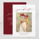 Convide familiares e amigos com este convite de formatura personalizável da turma de 2023. Ele apresenta caligrafia caprichosa vermelha e tipografia clássica. Personalize este simples convite de formatura adicionando sua foto, nome e nome da escola. Este convite de formatura com foto em script elegante é perfeito para formaturas do ensino médio ou faculdade.