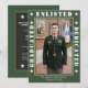 Este design de convite de formatura por alistamento militar apresenta uma moldura verde exército em dois tons negritos, estrelas patrióticas e um layout de foto central. Perfeito para celebrar um graduado que entra nas forças armadas, destaca orgulho, honra e serviço, criando um memorável convite de formatura por alistamento militar. Criado por Simply Farmhouse Press.