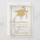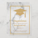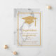 Parabéns escritos em negrito, uma borda em negrito e um chapéu de formatura em ouro falso em um fundo de mármore ilustrado, acentuam este convite de formatura, mantendo-o simples, elegante e tornando-o perfeito para o graduado ou graduada. Se itens adicionais forem necessários nesta coleção, basta entrar em contato conosco em prettyfancyinvites@gmail.com, com sua solicitação.
