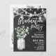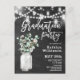 Cartão de convite de festa de formatura em pote de mason com quadro-negro e eucalipto. Parabéns ao FORMADO! Parabéns pelo sucesso bem merecido e celebre-os com este lindo cartão. Todos os textos estão pré-organizados para você personalizar fácil e rapidamente com seus próprios detalhes.