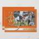 Anúncio de formatura de 2025 com três fotos em ouro e laranja com listra de time varsity
