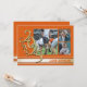Anúncio de formatura de faixa de universitário tripla foto ouro da turma de 2025 em laranja e dourado.