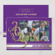Anúncio de formatura de 2025 com faixa de universitário em ouro e três fotos em roxo e dourado.