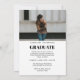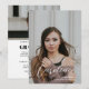Um convite de formatura moderno e clássico e cartão de convite com um script elegante, sobreposição de texto e duas (2) fotos (foto de retrato completo na frente e foto de paisagem de meia carta no verso). As fotos e detalhes são fáceis de personalizar e customizar.