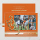 Anúncio de graduação de foto tripla com listra varsity dourada da turma de 2025 em laranja e dourado.