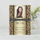 Lindo convite de formatura glitter preto e dourado leopardo. Você pode personalizar facilmente este elegante convite de formatura preto e dourado adicionando sua foto e detalhes do evento no estilo de fonte e cor, e redação de sua escolha. Você pode mover as fitas e excluir se preferir.