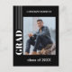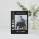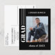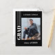 Estilo minimalista único e moderno, cartão de convite de formatura e festa de celebração com moldura de padrão de listras abstratas brancas em fundo preto. Com espaço para personalizar ou personalizar com uma foto, o nome do formando, ano de formatura, escola secundária, nome da faculdade ou universidade futura e informações do evento da festa de celebração. Deixe que a família, amigos e vizinhos saibam que há um formando feliz pronto para conquistar o mundo e convide todos para celebrar esse momento feliz com você!