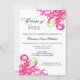 © Socialite Designs. Celebre a formatura do seu filho no ensino médio, faculdade, universidade ou outra escola pós-secundária com este elegante convite de formatura com redemoinho rosa e verde claro.