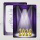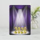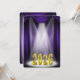 Convite da cerimônia de formatura para a turma de 2026 em roxo e dourado com holofotes.