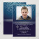 Um padrão de prata cintilante e abstrato num fundo azul gradiente com uma fita prateada faz um belo convite para qualquer ocasião. A cruz pode ser arrastada para qualquer local, maior ou menor (+-) ou eliminada. O cartão é fácil de personalizar com seu texto, fonte, cor da fonte e escolha de seis tipos de papel. Não exatamente o que você está procurando? Todos os nossos produtos podem ser personalizados para atender às suas necessidades sem custos adicionais. Basta entrar em contato conosco em askcottonlamb@gmail.com Coordenando os produtos disponíveis:Convite para fotos azul brilhante (horizontal)