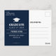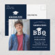 Anuncie sua formatura e convide seus hóspedes em estilo com este convite de festas personalizado de Formando de cartão-postal de foto. Este design moderno apresenta sua foto à esquerda e à direita, tipografia branca, em azul, realçada por uma ilustração de um boné de formatura. A parte de trás do cartão tem os detalhes da sua graduação acentuados por um boné de formatura branco. Parabéns pela sua formatura! Desenhada pela artista Susan Coffey.