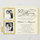 Convites Elegantes para Festa de Aniversário de 50 anos -- acabamento em dama dourado -- dois inserts de fotos para "então e agora" com letras em tipografia vintage e ornamentos retrô. Fácil de personalizar e tornar-se-á único por você! Basta enviar suas fotos e adicionar os nomes, data e detalhes para a sua celebração especial de Aniversário de Ouro. **OBS: Tamanho para cartões de convite GRANDES 6,5 x 8,75. Clique em "Personalizar" para alterar o tamanho e o tipo de letra. Outros tamanhos e estilos disponíveis na galeria. © Teri Francis. Selos e cartões de agradecimento combinando disponíveis mediante solicitação.