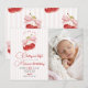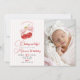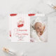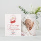 Adicione sua foto favorita a este convite de aniversário "Cerejinha". Inclui o encantador design de cereja vermelha e laço rosa, tornando-o um lindo souvenir para o primeiro marco de uma menina.
