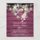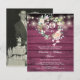 Com uma delicada guirlanda de rosas florais em aquarela e luzes de corda bonitas em um fundo de painéis de madeira vermelha bordô, este convite de aniversário de casamento de 50 anos rústico e chique pode ser personalizado com as informações do seu aniversário especial. O verso apresenta sua foto especial. Criado por Thisisnotme©