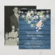 Com uma delicada guirlanda de rosas florais em aquarela e luzes de corda bonitas em um fundo de painéis de madeira azul, este convite de aniversário de casamento de 50 anos rústico e sofisticado pode ser personalizado com as informações do seu aniversário especial. O verso apresenta sua foto especial. Criado por Thisisnotme©