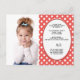 Convite de aniversário bonito, menina com design de bolinhas vermelha e branca. Este cartão é completamente personalizável, por isso adicione a sua fotografia e coloque o texto nos espaços fornecidos. Para obter um controle mais criativo, use o botão "Personalizar" para alterar a fonte, o tamanho da fonte ou a cor.