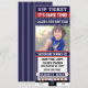 Convite de FOTO de BILHETE Azul e Bege de BEISBOL. Adicione texto na frente e no verso, se desejar. Exclua uma área de texto para deixá-la em branco. Adicione sua própria foto para um convite único completo.