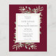 Com delicadas folhas de verde aquarela em um fundo borgonha, este convite de casamento botânico econômico e elegante pode ser personalizado com sua foto e informações especiais do dia do casamento. Criado por Thisisnotme©