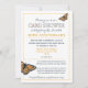 Celebre um aniversário de ouro com um pedido de chuva de cartões personalizados! Este requintado Pedido de Chuva de Cartões com Borboleta Monarca é a maneira perfeita de celebrar o marco de 50 anos de aniversário de seus entes queridos! O cartão apresenta arte original de uma borboleta Monarca, simbolizando a beleza e a graça de uma união duradoura. O verso do cartão tem um modelo de foto para incluir uma foto do casal feliz. O design elegante e as cores clássicas do cartão o tornam uma escolha ideal para qualquer casal que celebre seu aniversário de ouro.