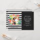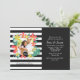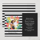 Um convite fotográfico dramático com flores tropicais coloridas e folhagens contra um fundo de listras em preto e branco.<br/><br/>O cartão é fácil de personalizar com sua redação, fonte, cor da fonte, opções de forma de papel e escolha de seis tipos de papel.<br/><br/>Não é exatamente o que você está procurando? Todos os nossos produtos podem ser personalizados para atender às suas necessidades sem nenhum custo adicional.<br/><br/>Basta entrar em contato conosco em askpixieprints@aol.com.<br/><br/>Produtos coordenados disponíveis: Basta perguntar!