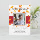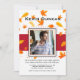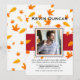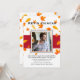 Um convite de foto com fundo branco, folhas de outono uma faixa vermelha ousada e uma janela de foto central. Adequado para todas as idades e ambos os sexos. (<a href='https://www.freepik.com/free-vector/autumn-sale-background-with-leaves-pattern_2841819.htm'>Projetado por Starline</a>). (<a href='https://www.freepik.com/free-photo/elegant-young-handsome-man_1232144.htm'>Projetado por Nensuria</a>). <br/><br/>O cartão é fácil de personalizar com sua redação, fonte e cor da fonte.<br/><br/>Não é exatamente o que você está procurando? Todos os nossos produtos podem ser personalizados para atender às suas necessidades sem custo adicional.<br/><br/>Basta entrar em contato conosco em askcottonlamb@gmail.com.<br/><br/>Produtos coordenados disponíveis: Basta perguntar!