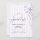 Celebre sua conquista memorável com este elegante convite de formatura. Com um charmoso laço roxo e um fundo listrado clássico em tons suaves de lavanda, este design é perfeito para anunciar sua formatura com estilo. O espaço para a sua foto de formatura querida adiciona um toque pessoal, tornando-o um item de recordação para amigos e familiares. Este convite é ideal para anunciar sua formatura pela Turma de 2026, com espaço para seu nome e detalhes da escola.