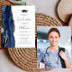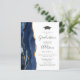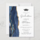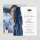 Este convite de festa de formatura de 2026 apresenta uma imagem em aquarela de geodo de ágata azul-marinho com destaques de brilho dourado falso. A palavra "Graduação" e o primeiro nome do graduado aparecem em elegante escrita à mão em cinza carvão em um fundo branco, juntamente com um chapéu de formatura e detalhes da festa em fontes sans serif e itálico. Substitua facilmente a imagem de amostra no verso por uma foto vertical do graduado.
